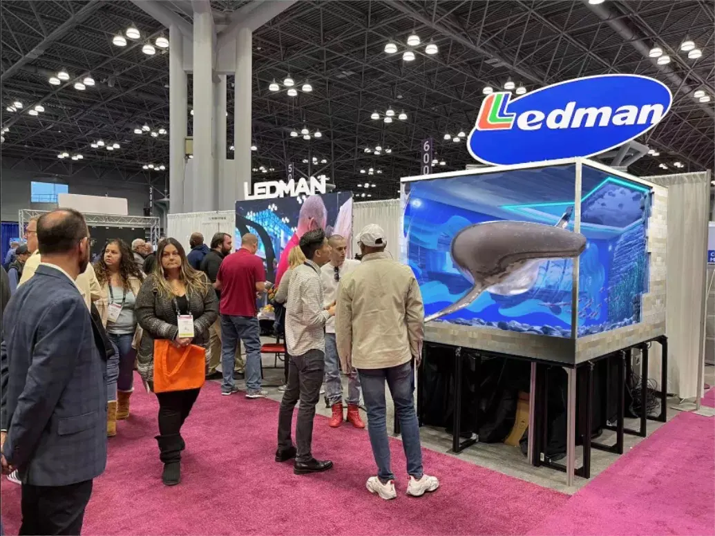 Another star product of Ledman, namely COB naked-eye 3D display screen, was also a focus of attention. With bright color and high true contrast to show the dark and bright details in rich layers, the naked-eye 3D video contents of independent creative design and production were presented successively. The clever and transparent pictures seemed to break through the screen in a twinkling of an eye. Together, they delivered to visitors an immersive visual experience.