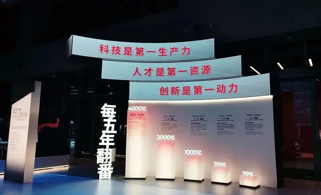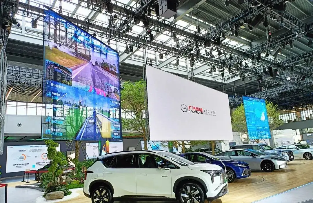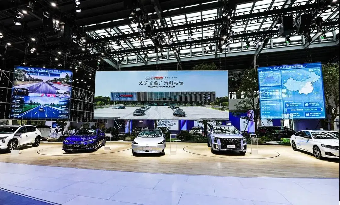 The area mainly displays GAC self-developed powertrain technology achievements. The display wall area shows GAC performance that "doubles every five years" and development history, while flexible screen displays brand slogan and development concept. Visitors can intuitively feel the rapid development of GAC in recent years and growing brand influence.