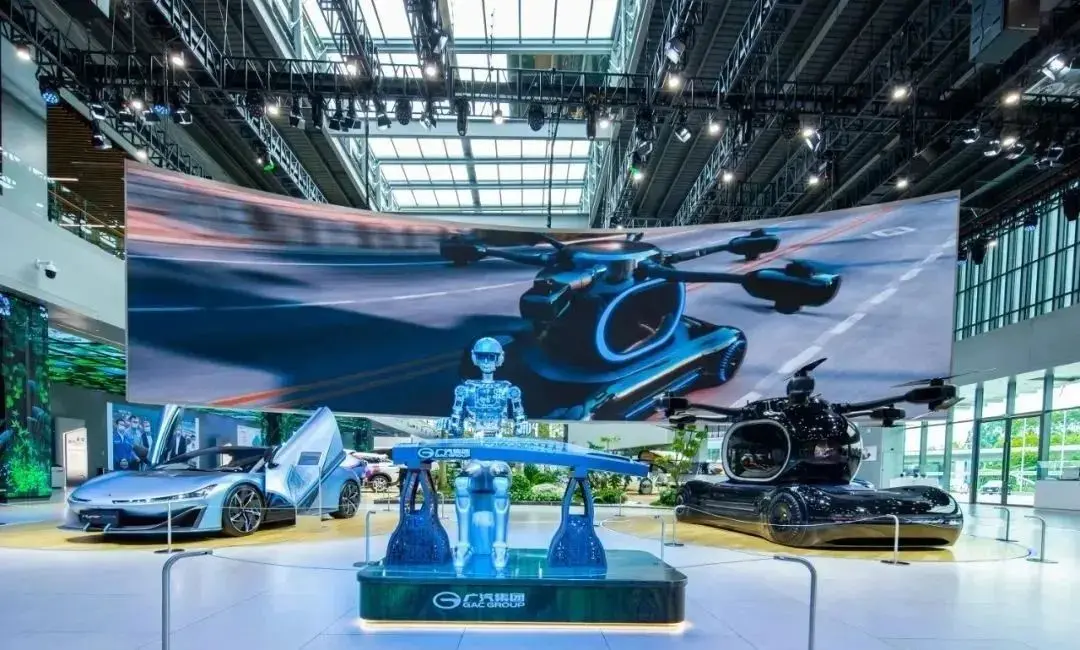 A series of black technology works on display in the area, while delivering a stunning visual experience typical to small spacing curved screen, offers vivid presentation of GAC flying car, driverless car and other future vehicle concepts.