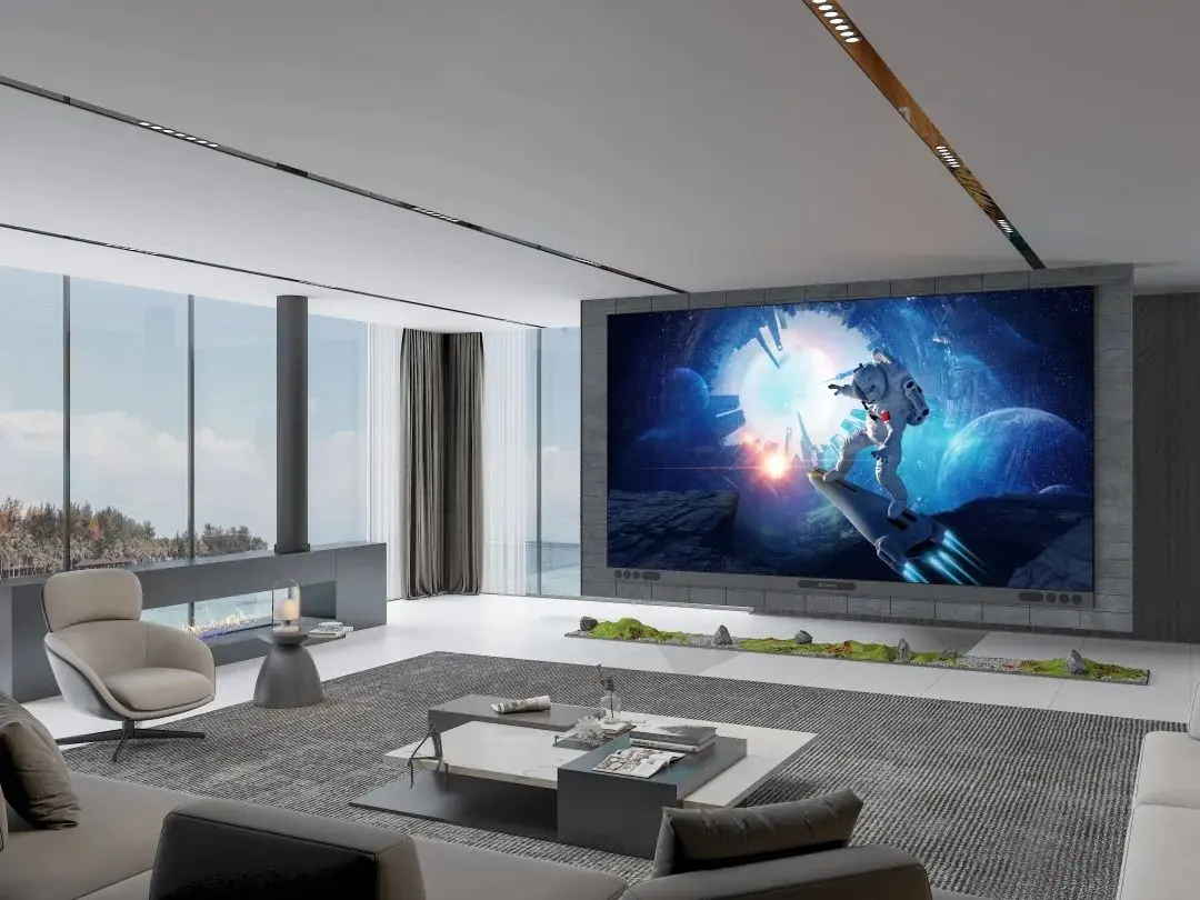 Blessed with Micro LED self-luminous nano black crystal coating, Micro LED stitching UHD ink jade panel, modular technology, it is easy in-home installation, along with advantages ranging from super clear picture quality, high contrast, high refresh rate, to wide color gamut and wide viewing angle. Nanosecond response speed, rich HD interface and ultra-high screen ratio of unbounded vision guarantee ultimate visual effect.